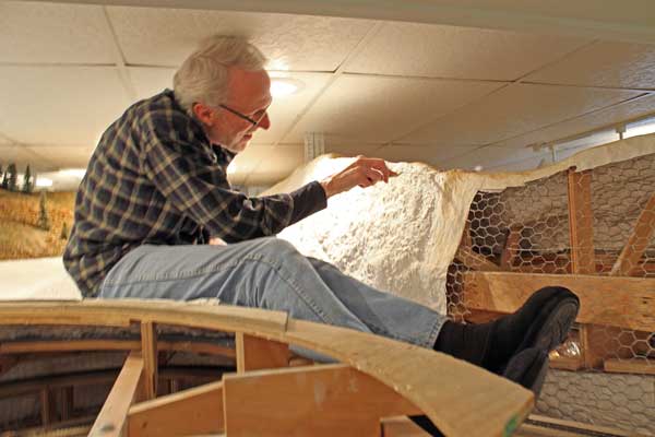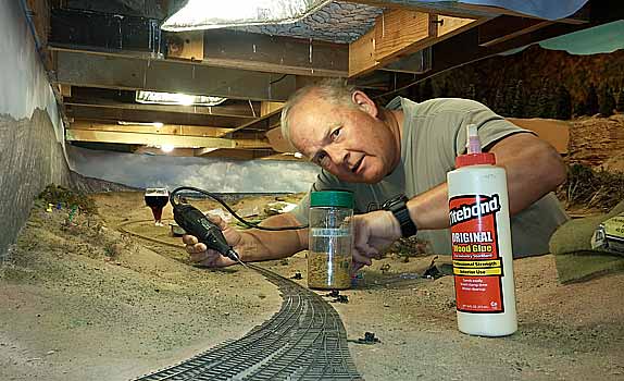 It takes a lot of plastering to make a convincing Colorado railroad. Sometimes having help with the job is a good thing....sometimes not: