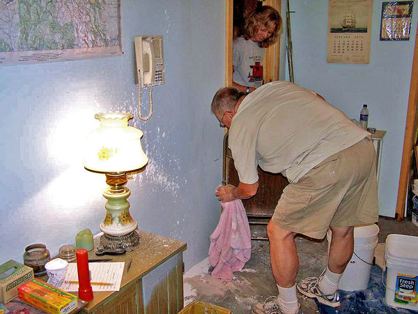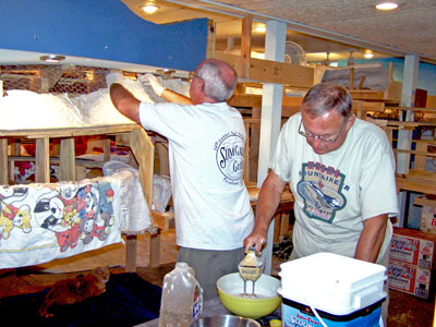 THE PLASTER CREW (BILL SCOBIE AND DON WAWRZYNIAK) HARD AT WORK